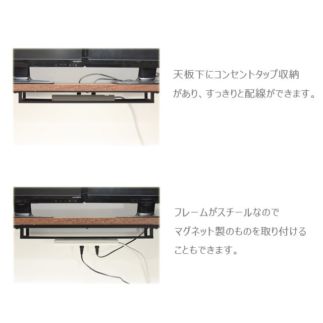 ◆天板下にコンセントタップ収納があり、すっきりと配線ができます。