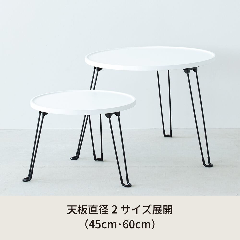 ノートPCを広げて作業したり、食事も並べられる直径60cmの2サイズ展開。