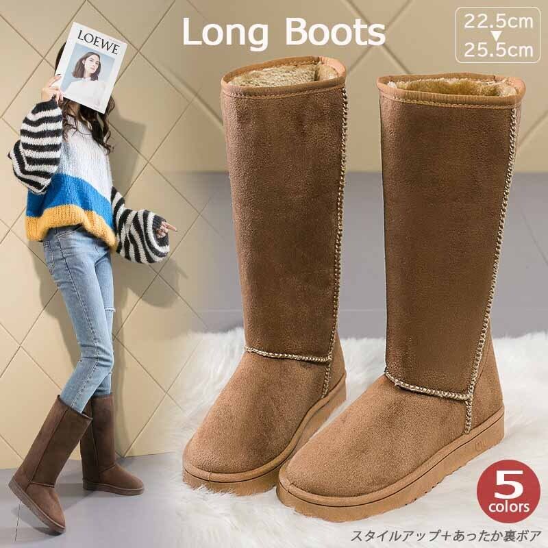 レディース 靴 ロングブーツ フラット 裏ボア 脚長 裏起毛 滑り止め スタイルアップ 美脚