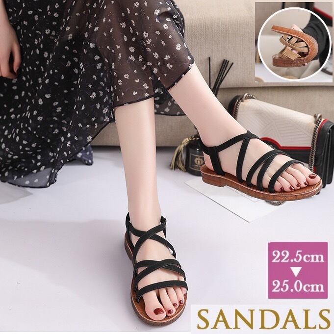 2024新作 レディース ストラップサンダル 歩きやすい 幅広 フラット 歩きやすい ぺたんこ ストラップ 黒