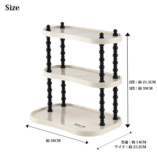 3段/ワイド 小物ラック 小物トレイ シェルフ 洗面台収納 化粧品収納 ディスプレイ 調味料ラック