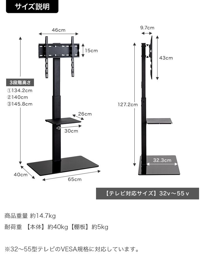 幅65cm×奥行40cm×高さ134.2~145.8cm