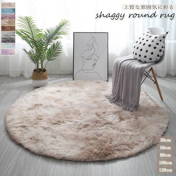 100cm シャギー円形ラグ 丸いカーペット リビング ラグマット 座布団 抗菌 防臭 ふわふわ肌触り
